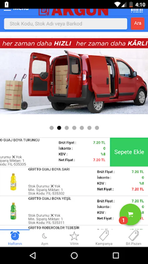 "Akgun B2B Distribution System" If you are not a member, in the home screen "Dealer Application" section, you can apply to become a member of the system.