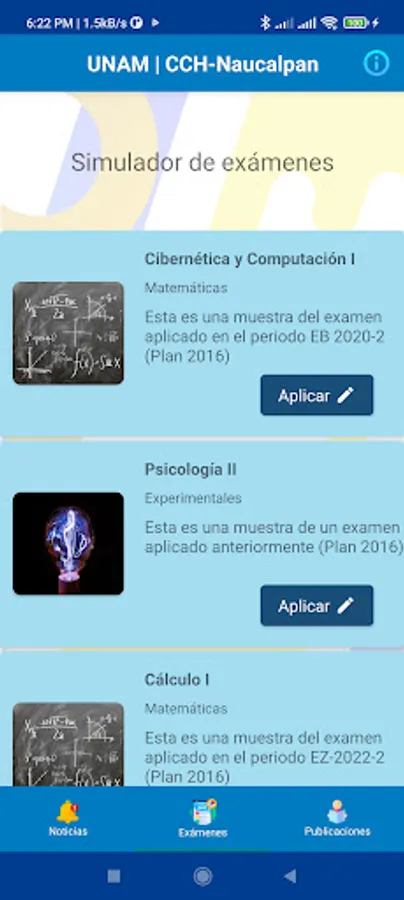 With this new version you will be able to consult the current events of the CCH-Naucalpan, its publications and, above all, an exam simulator with which you will be able to study for an extraordinary or simply want to test your knowledge of a subject.
