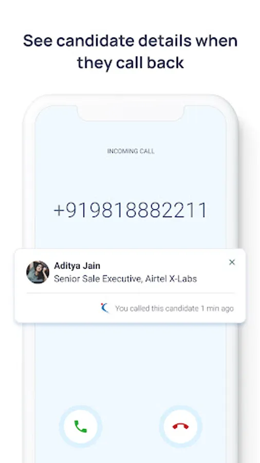 2. Increase call pickup by candidates - The new Recruiter App allows you to enter the intent of your call even before you reach out to the candidates. Hence candidates know who is calling and for what purpose even before they pick up. This means increased call pick up rates, less follow-ups and more conversions for you!
