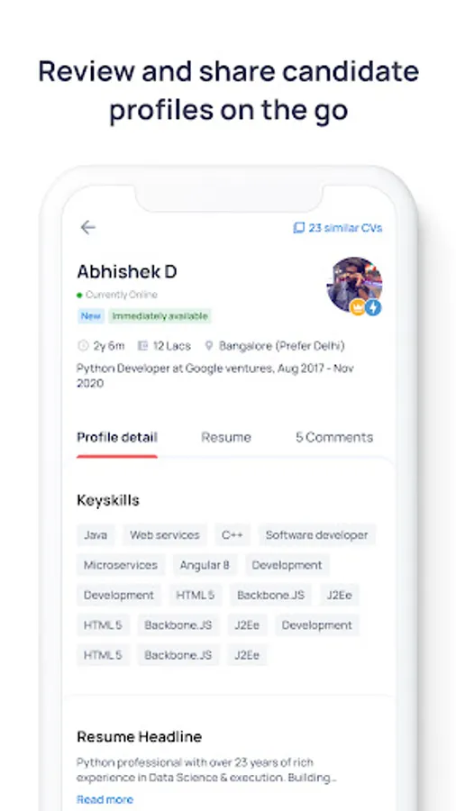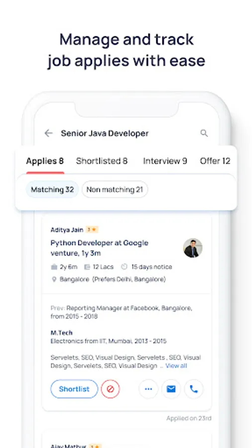 3. Continue right from where you left - Now you can carry on right from where you left your desktop. Naukri also offers a personalized experience tailored to your specific needs. You can easily check the status of your job applications, conduct a search, see which candidates have been called (call picked up/not picked up) and more – all in real time from the convenience of your mobile device.