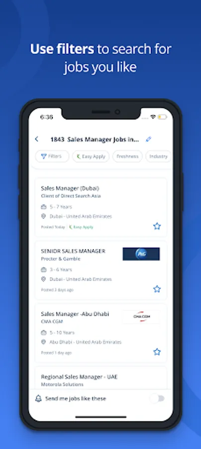 • It lets you find jobs in the UAE, Saudi Arabia, Bahrain, Qatar, Kuwait, and Oman