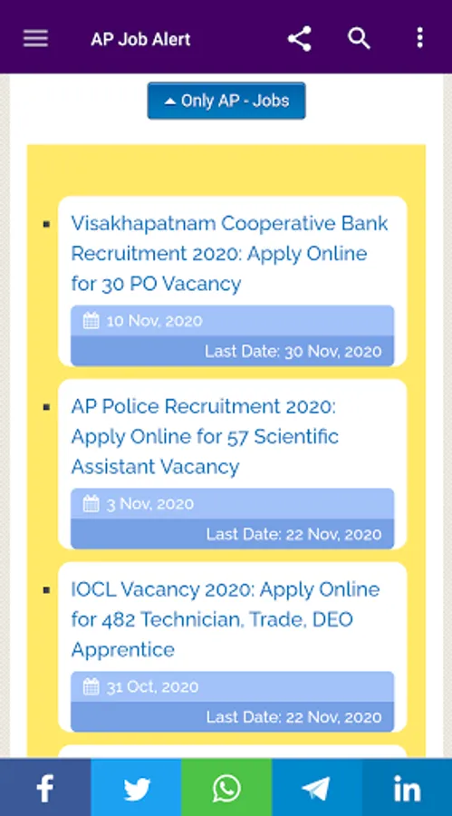 Search any job: You can search Andhra Pradesh Job Notifications in the app.