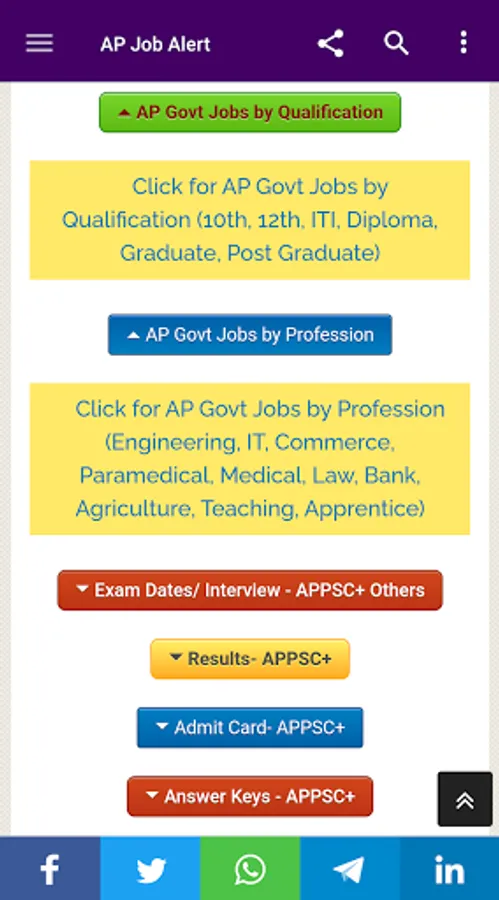 Andhra Pradesh Job Alerts Android App for APPSC, APCOB Bank, TSSPDCL, APSPDCL, SSC, UPSC, Railway, Andhra Pradesh Postal circle, Bank jobs, Indian ARMY Recruitment Ralley Notifications, Bombay High Court, AP Police Job, AP Forest Guard Vacancy, Clerk Job, Teaching jobs, Central govt job in Andhra Pradesh, Jobs in Krishna, etc.