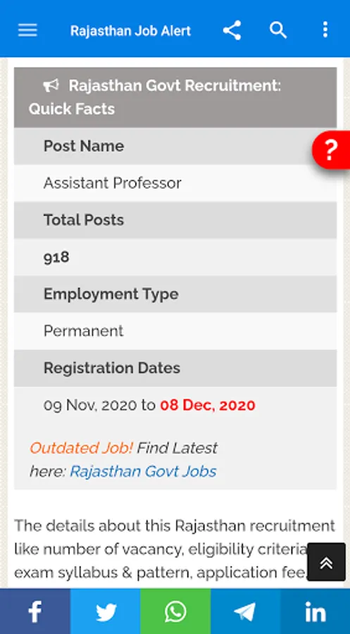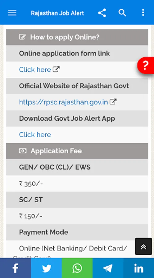Every detail about every job like Vacancy details, Apply Online link, Official website link, selection process, Application fee & Full notification of Rajasthan govt jobs in easy and simple language. Download and share job notification in PDF format to your mobile phone.