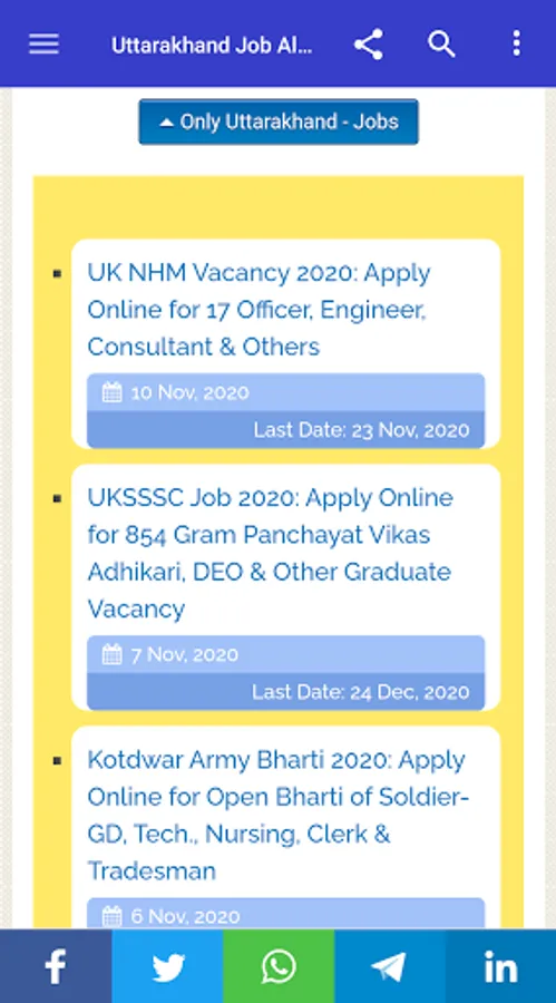 Every detail about every Uttarakhand job like Vacancy details, Apply Online link, Official website link, selection process, Application fee & Full notification of Uttarakhand govt jobs in easy and simple language. Download and share job notification in PDF format to your mobile phone.