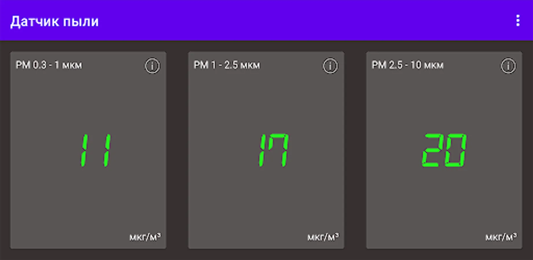 Application for displaying the readings of the dust particle concentration sensor of Scientific Entertainment LLC