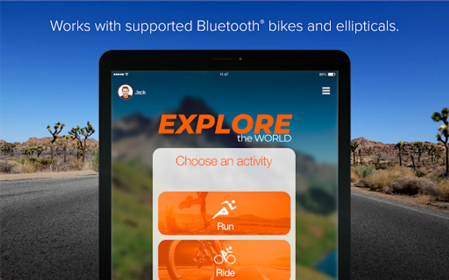 The Explore the World™ App allows you to virtually travel the globe from the comfort of home and automatically adjusts in real-time to the speed of your Bluetooth® enabled Bowflex, Schwinn Fitness, and Nautilus fitness equipment.