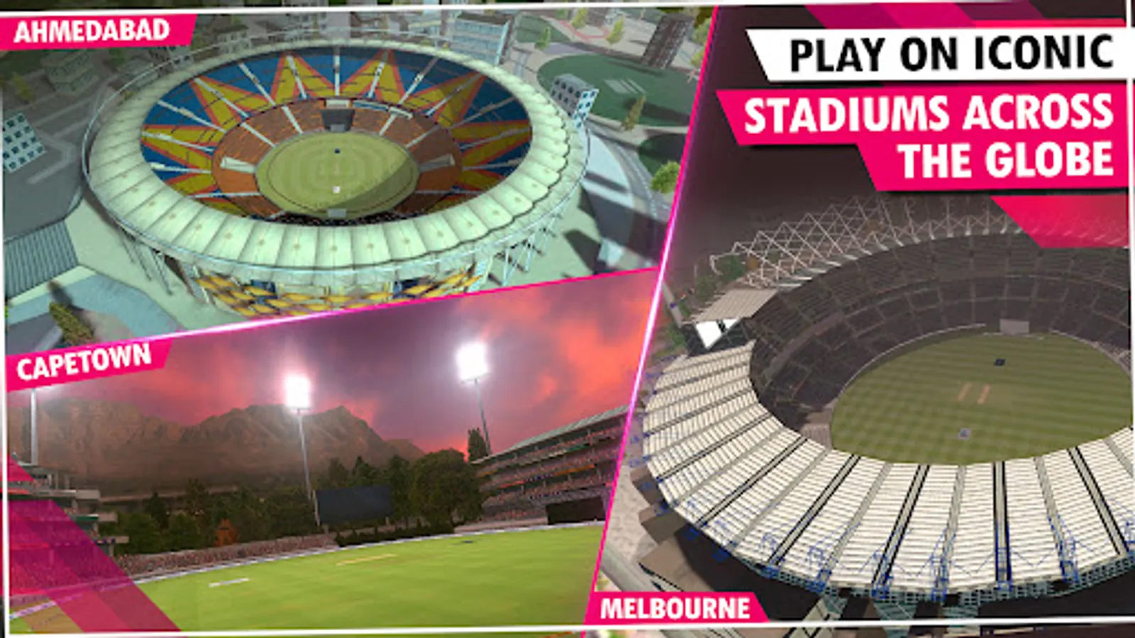 Introducing ALL-NEW STADIUMS that are made to scale with the Real-World Cricket Stadiums across the Globe. Play with your favorite teams to the sounds of cheering crowds in picturesque International Cricket Stadiums.
