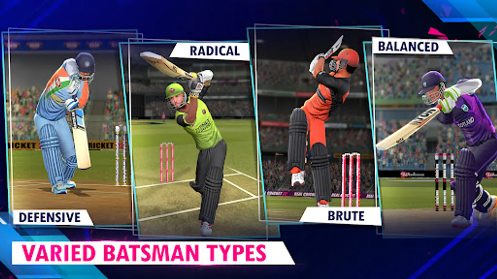 A massive bouquet of more than 600+ batting shots in Real Cricket 22, allowing player to have unique and more advanced batting styles of their own. Real Cricket 22 is the only game on mobile that provides with such a huge variety of Batting shots.