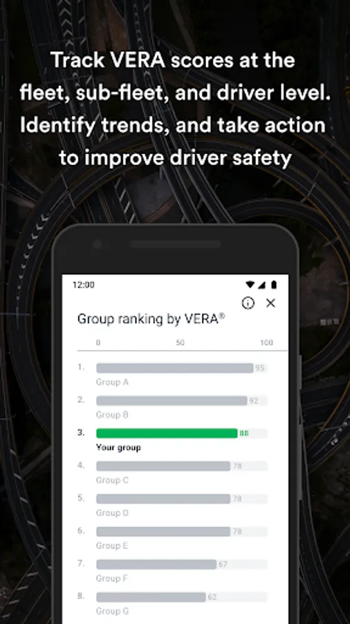 The app includes VERA(R) (Vision Enhanced Risk Assessment) safety scoring and ranking, providing fleet, sub-fleet, and individual driver safety scores. This provides drivers and managers with the necessary insights to help address key safety performance issues.