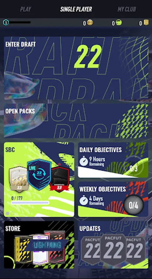 •Open Packs: You can open different types of FUT Packs on the PAC FUT open packs mode. Many different types of packs are provided and many are added on each update and in the lightning rounds.