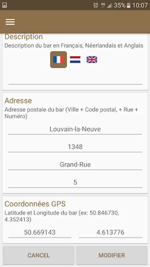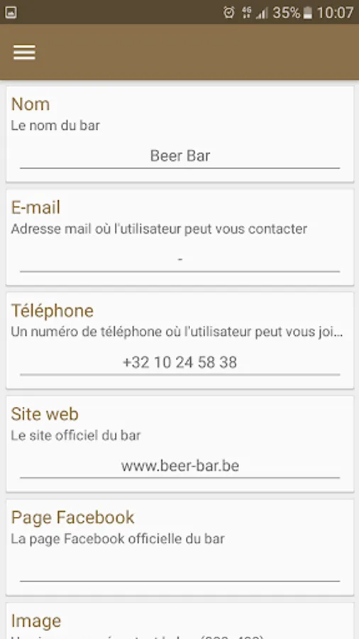 In particular, barkeepers can manage informations related to their bar like its picture, its name, its localisation, its website, ...
