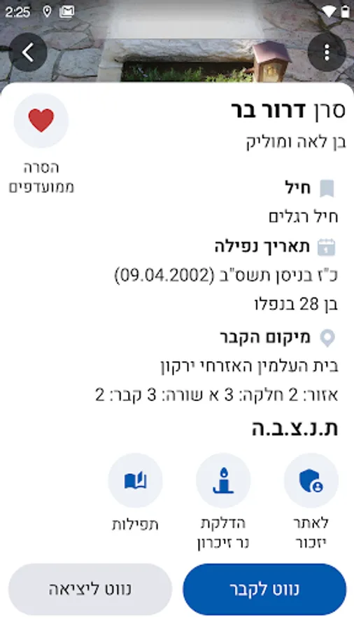 Netivey Zikaron is an application that allows navigating to the graves from the cemetery gates or inside the cemetery.