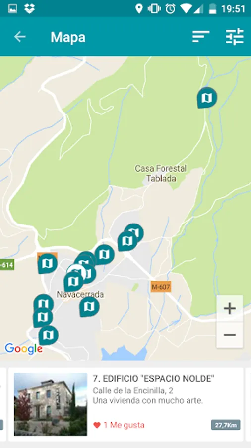All the points are geopositioned, indicating the route to follow to reach each one of them.