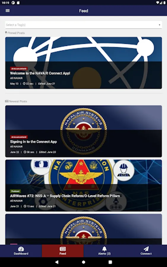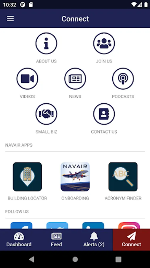 Easily access your NAVAIR Local Command's news articles, podcasts, videos, and messages with the NAVAIR Connect App.