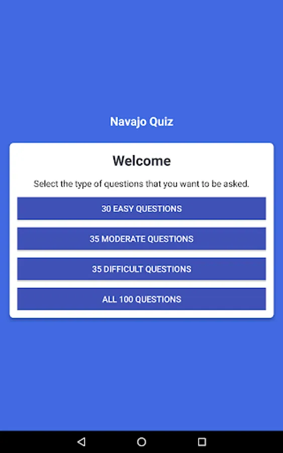 Welcome to the Navajo Quiz Game Application now available for the Android phone and tablet.