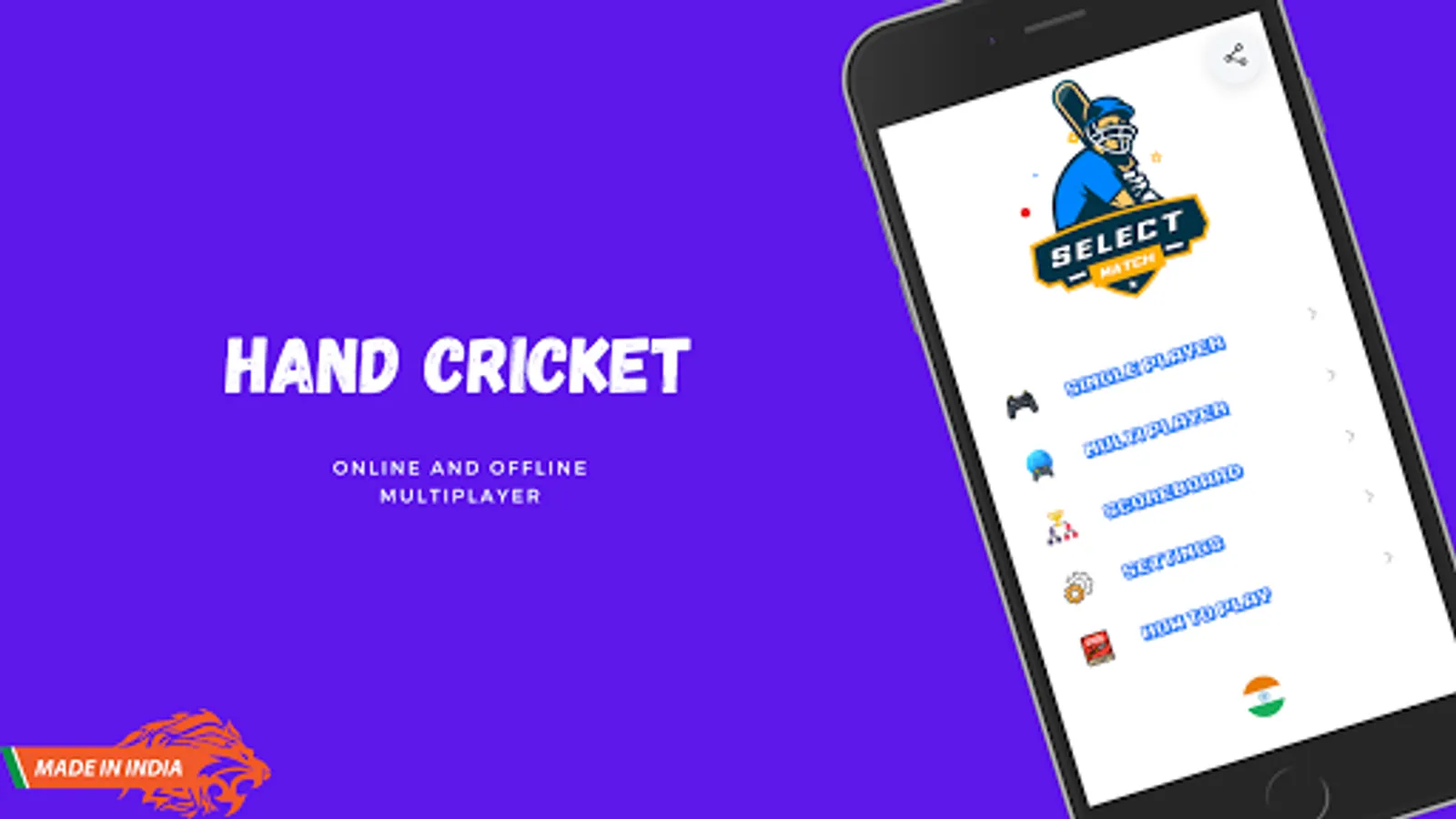 Hand Cricket or Odd or Even is an Online game in which two players show scores on their respective fingers. If the scores are equal, the batsman is declared out. otherwise, the score of the batsman is added to the total runs of the batting team. The game begins with a toss and winner of toss gets to choose to be batsman or baller. When the batsman is out, the role is swapped between batsman and baller. The one scoring the more scores win.