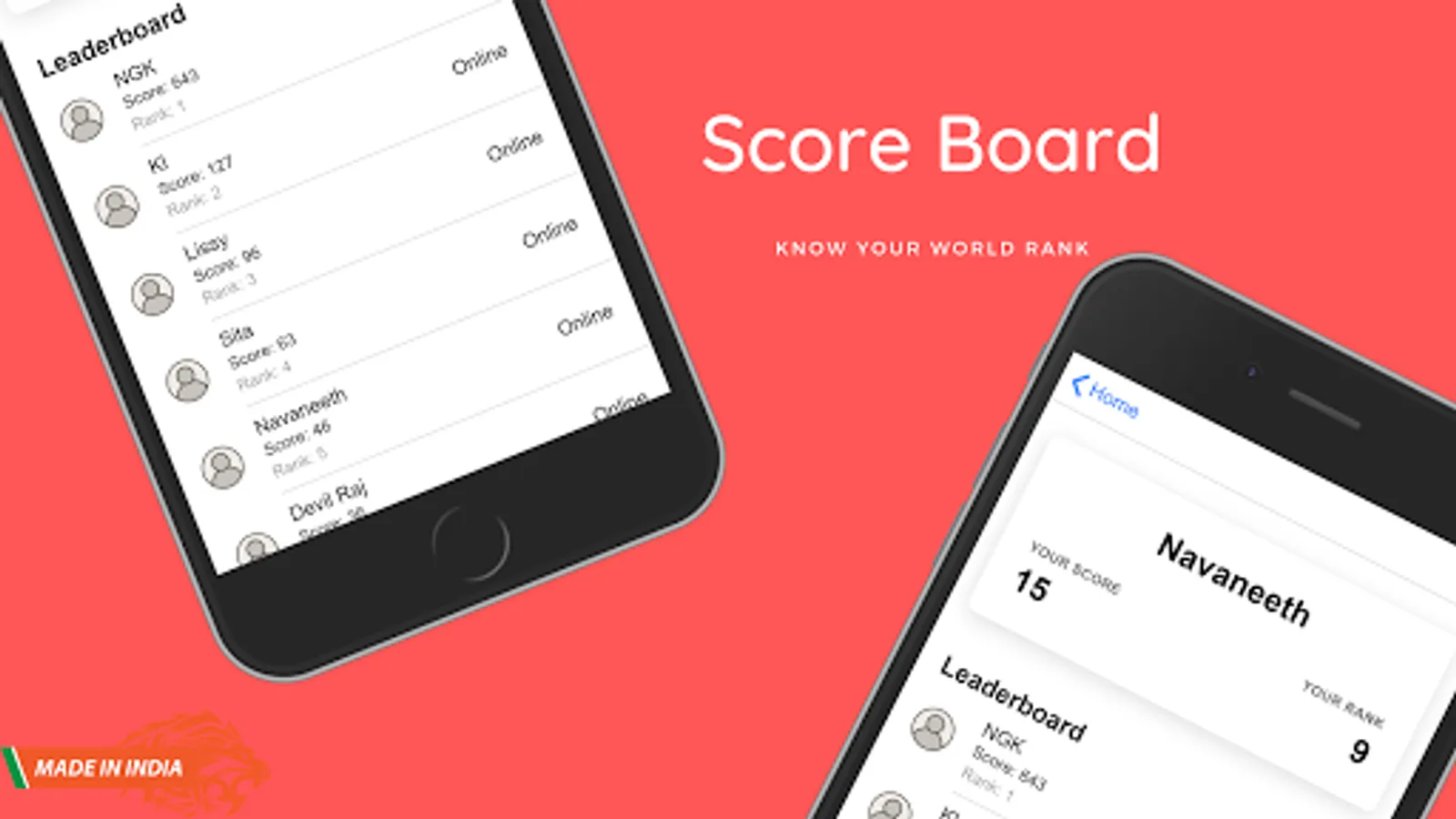 - The scoreboard shows the top players
