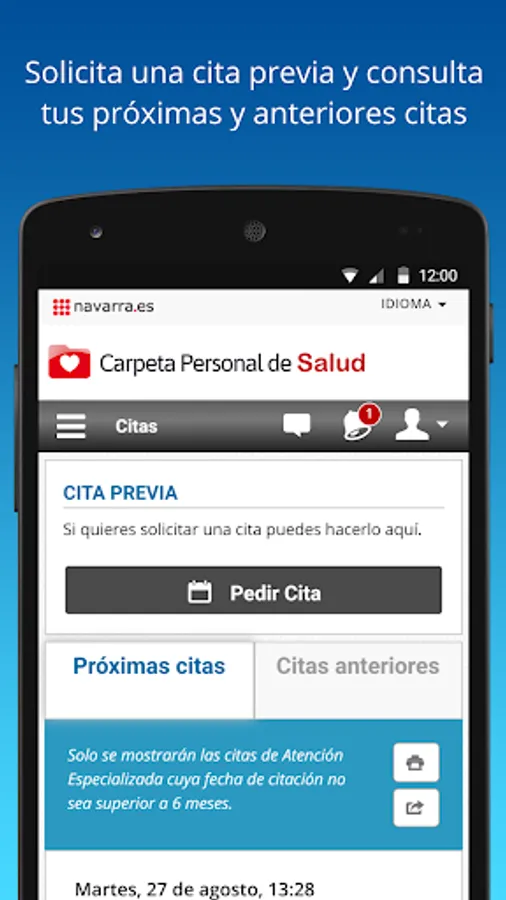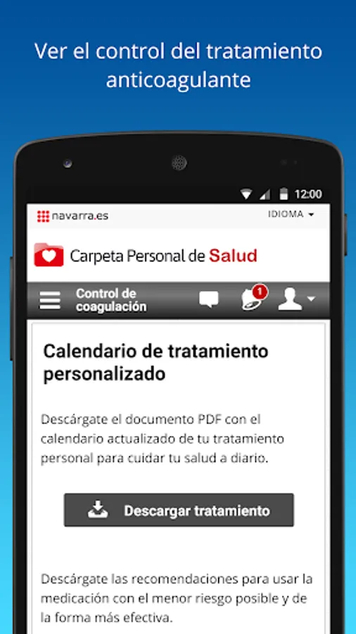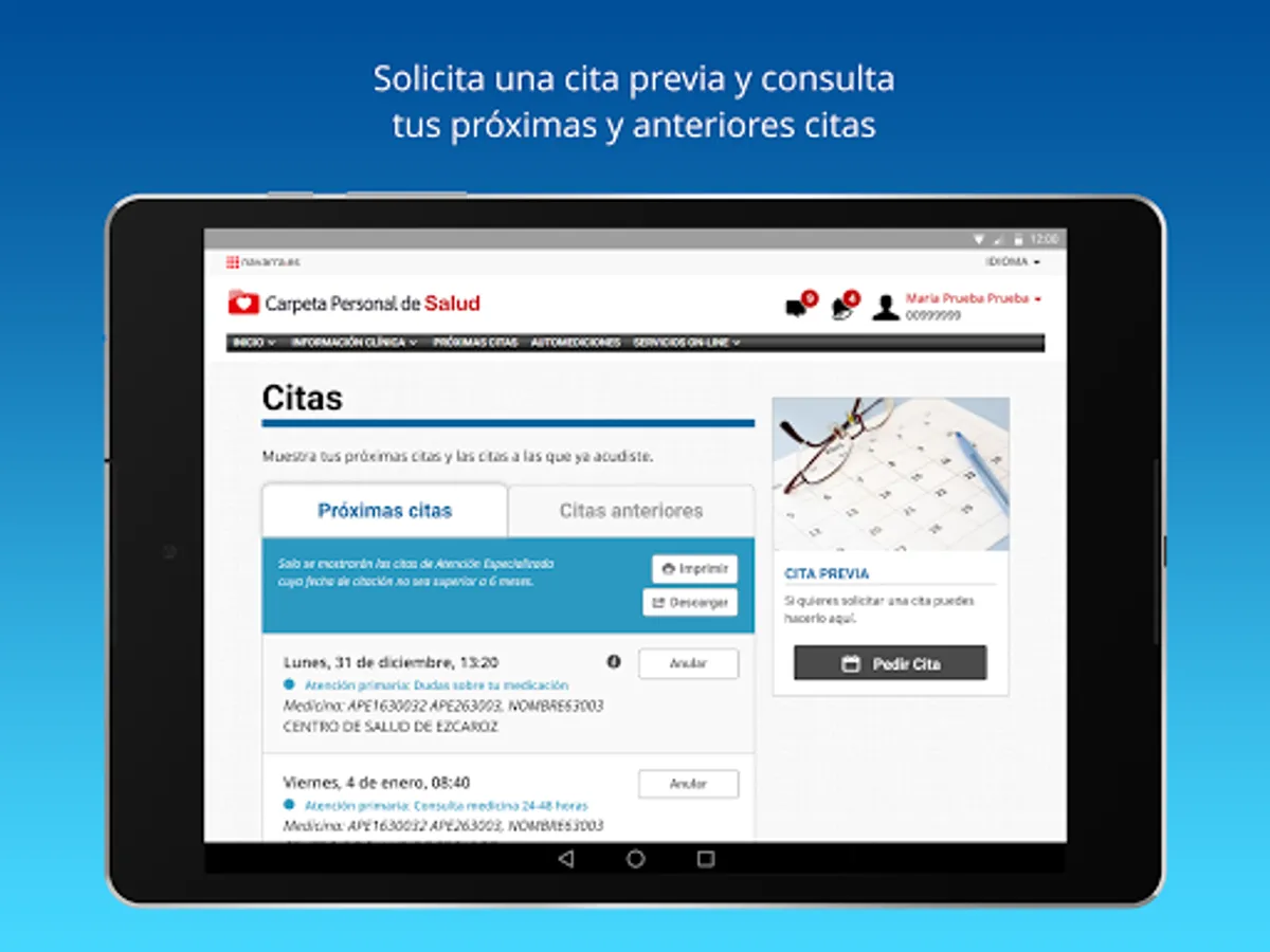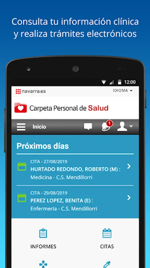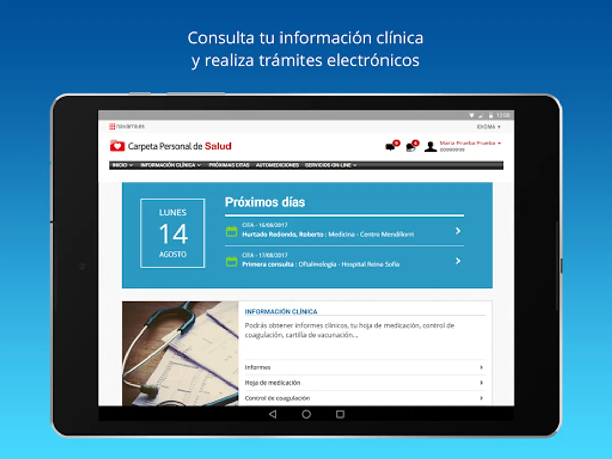 In the Personal Health Folder you will find medical and nursing reports, notices of upcoming appointments, your vaccination record, information on the medication you take or instructions on the lifestyles that have been recommended to you in consultation.