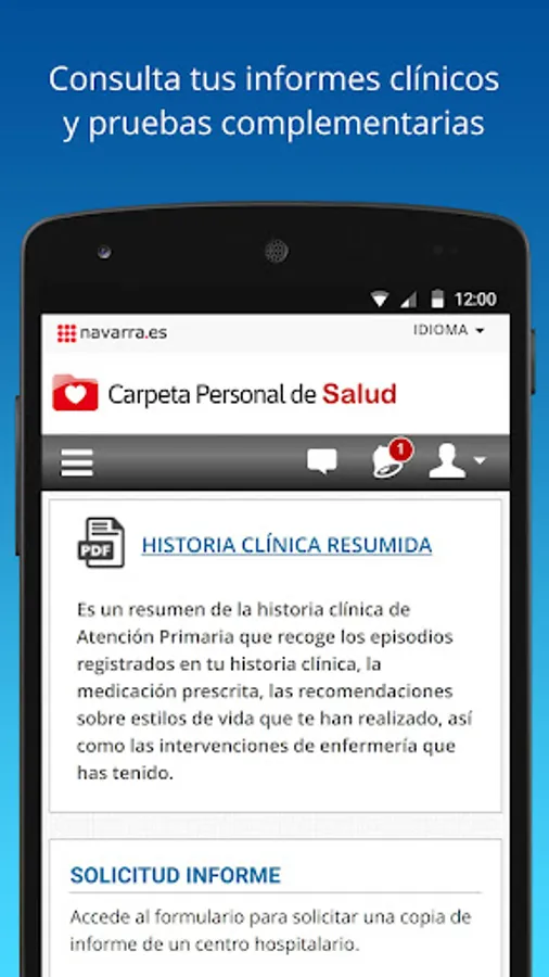 The Personal Health Folder is the result of the digital information generated by the centers where you receive care, and the information that you consider necessary to provide, to complete your history.