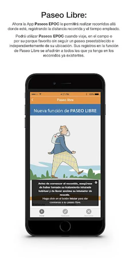 "Walking COPD" offers patients with COPD (Chronic Obstructive Pulmonary Disease) the possibility of putting into practice a regulated and entertaining, one of the main points of treatment: conducting physical exercise through a series of tours updated by the Region of Pamplona and Estella, accessing them through mobile phone and carrying a record that facilitates the monitoring of medical specialist.