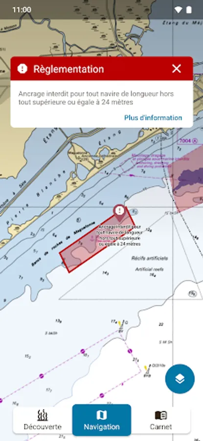 You can also save your browsing track. You will find it in your navigation log. You are informed of your entry into a marine protected area as well as areas subject to special environmental regulations.