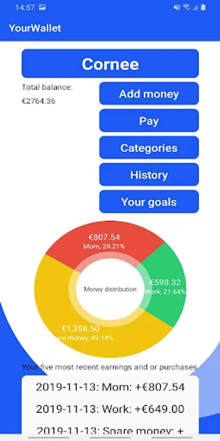Whether you are at the mall or at your hairdresser, you now can view how much money you have left. With this simple to use app you can create different categories, and pay/add money to those categories. You will also get a simple to read piechart showing where all your money is.