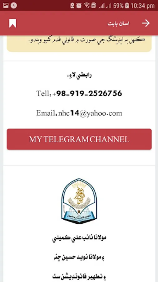 چيف ايڊيٽر مودّت ميگزين: مولانا نائب علي ڪميلي