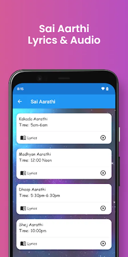 Along with Sai aarathi lyrics, We have also provided AUDIOS for the aarathis.