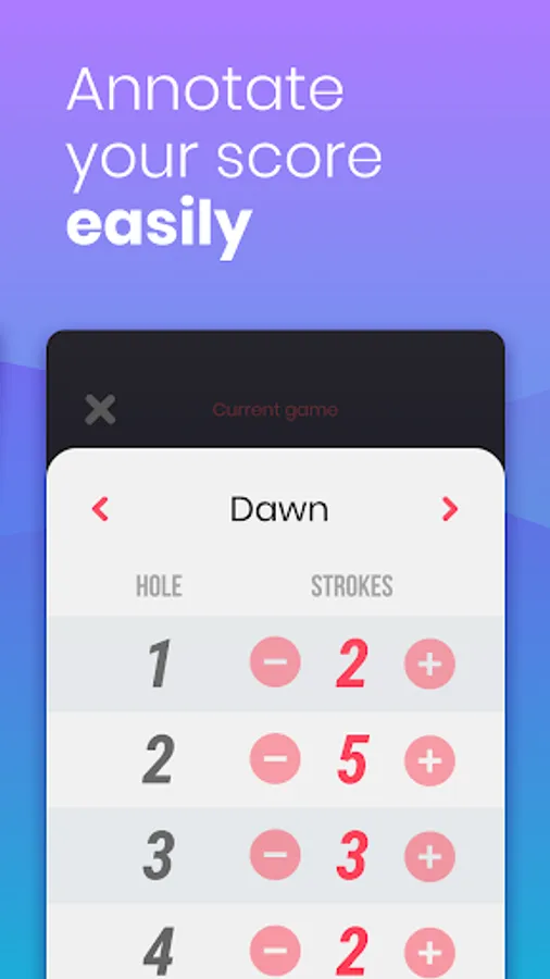 With My Minigolf Scorecard X you will be able to annotate all players' scores during the game on a digital score card and store it to access them whenever you want.