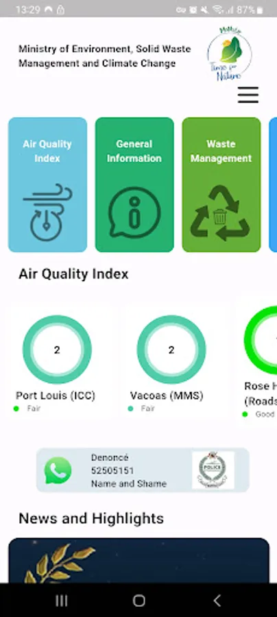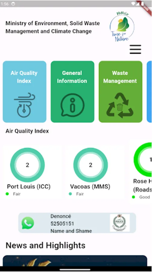 The mobile application – MoNatir provides vital and dynamic environmental information to the public to make them aware of the quality of our environment. The following features have been provided in the mobile app: