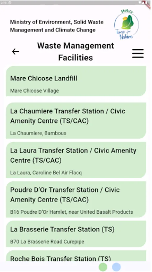 Solid Waste Management: Display list of waste management sites (Civic amenities centre/ transfer stations/ landfill) for solid and hazardous wastes in Mauritius (their respective locations & direction, contact details of contractors) as well as list of recyclers and exporters with contact details of companies dealing with different types of waste such as paper, carton, timber, electronic, waste oil and construction waste, amongst others;
