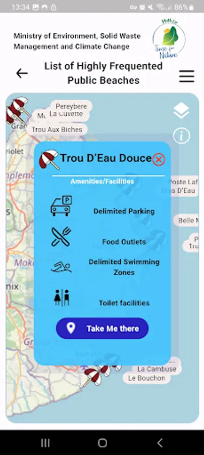 Beach information: List of highly frequented public beaches and associated amenities available onsite (for e.g. toilet block, food outlets, delimited parking and delimited swim zones) to be displayed on a map with their respective locations;