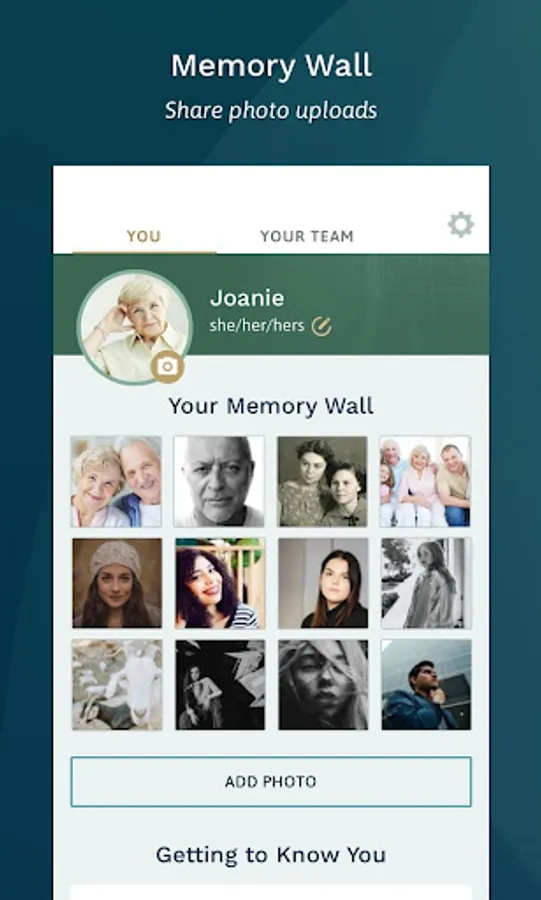 “Memory Wall” for photo uploads to provide more background about who you are.