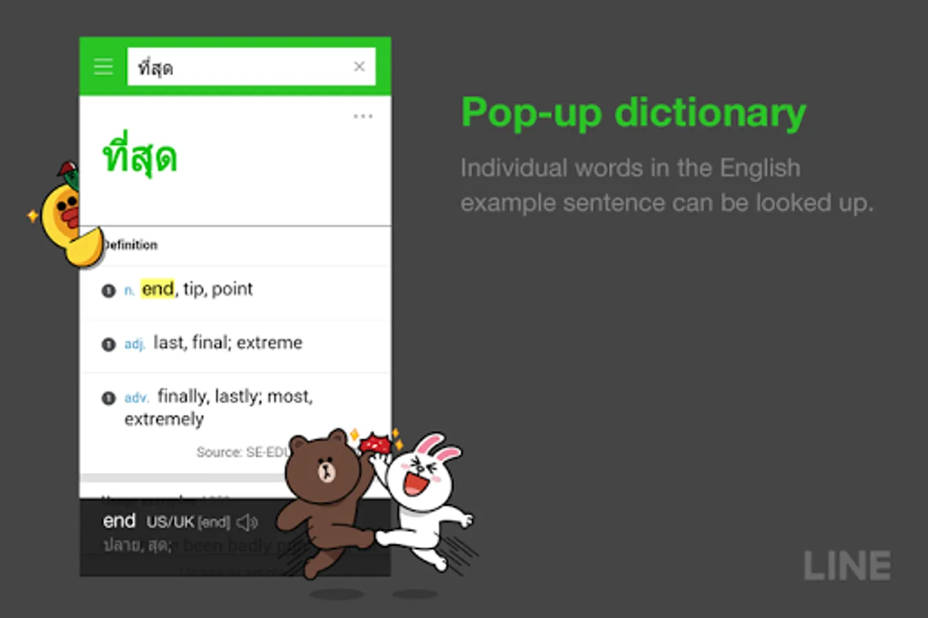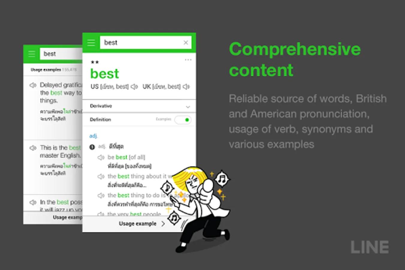 LINE Dictionary is also available on PC. Click ▶ www.linedict.com