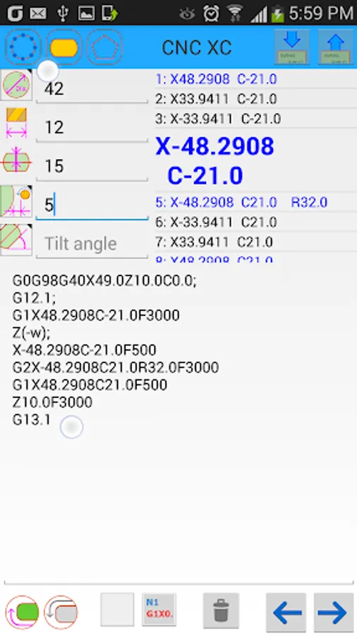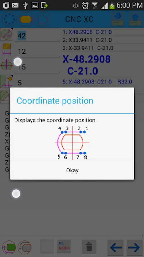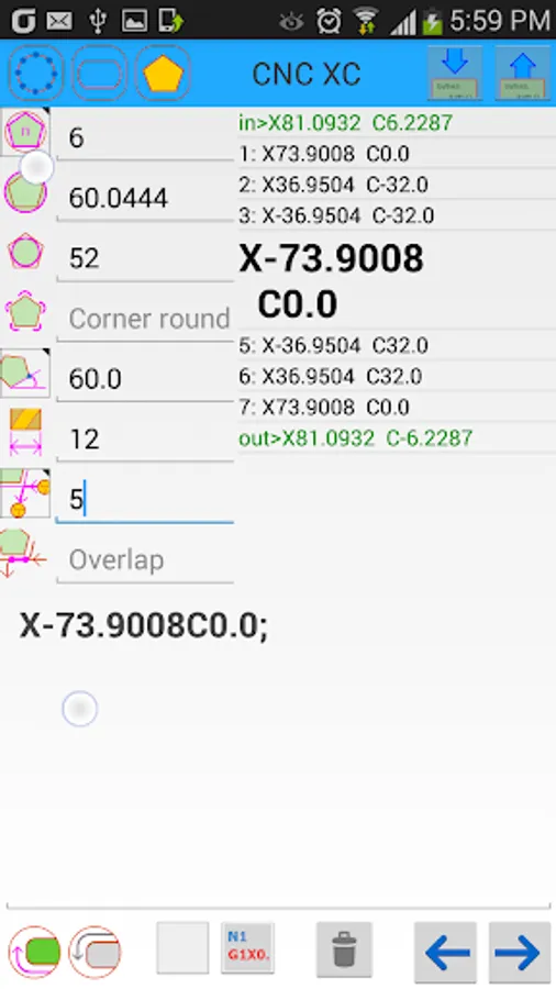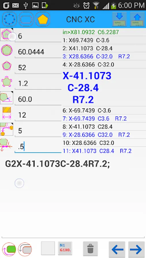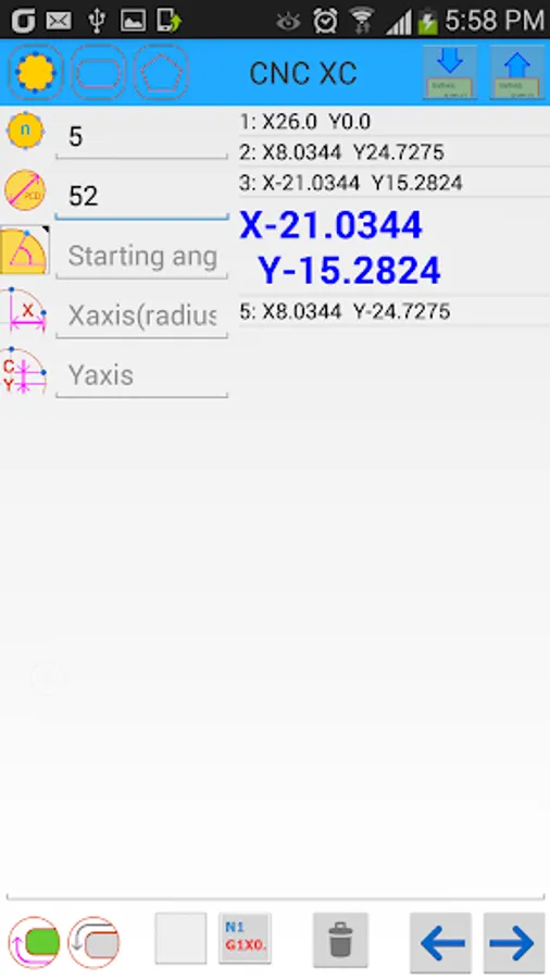 The program calculates the coordinates of the x-axis and c-axis for the following.
