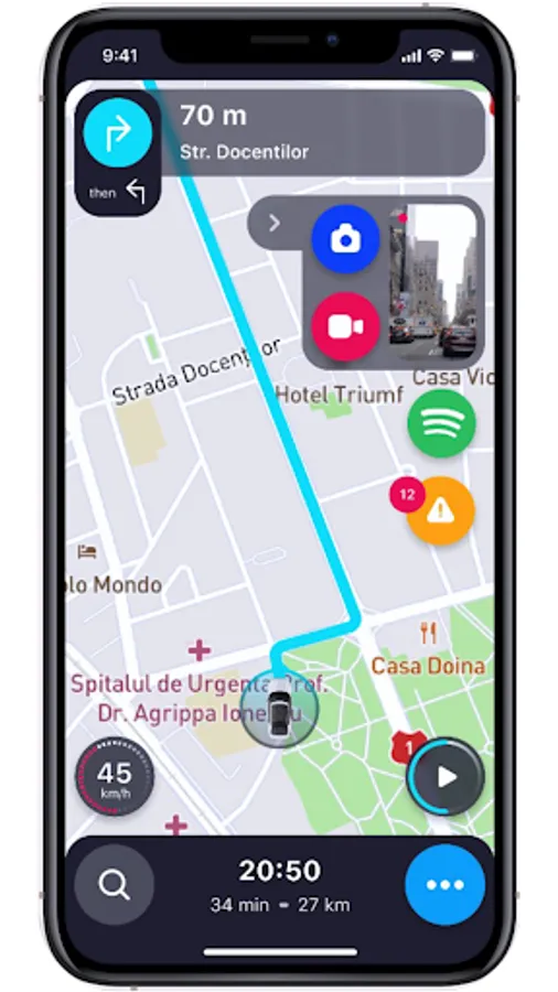 You can of course use Atlas Navi as a standard navigation app, without turning on the smartphone camera or the A.I. detections. You will benefit from all the rerouting and information received from other drivers which will make your route safer and faster.
