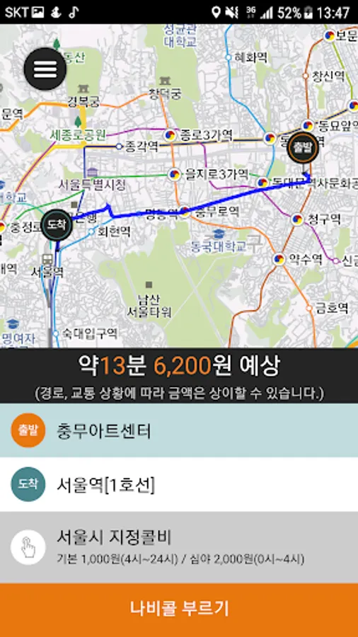 2. Tmap Traffic Information Based Estimated taxi fare to destination and estimated time to arrival in real time after boarding.