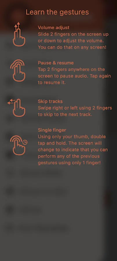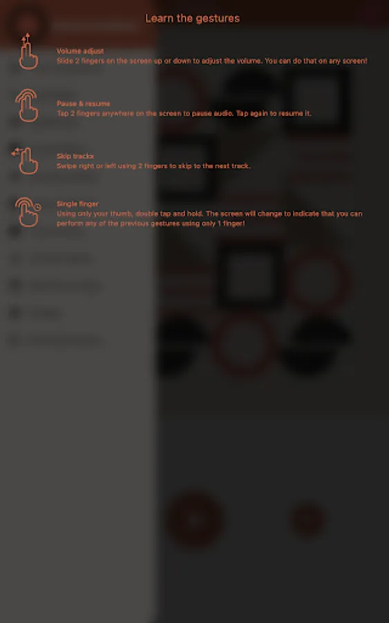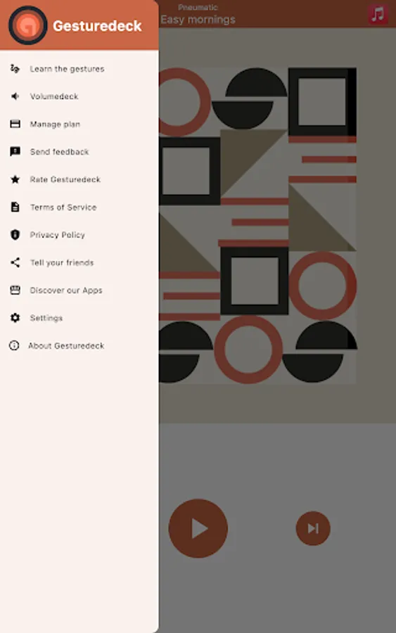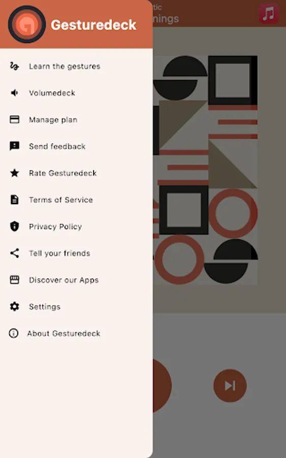 Use Gestrudeck as an overlay over any other music app! Enable "Overlay mode" in the app menu and touch gestures will always be one tap away, no matter which music app you are using!