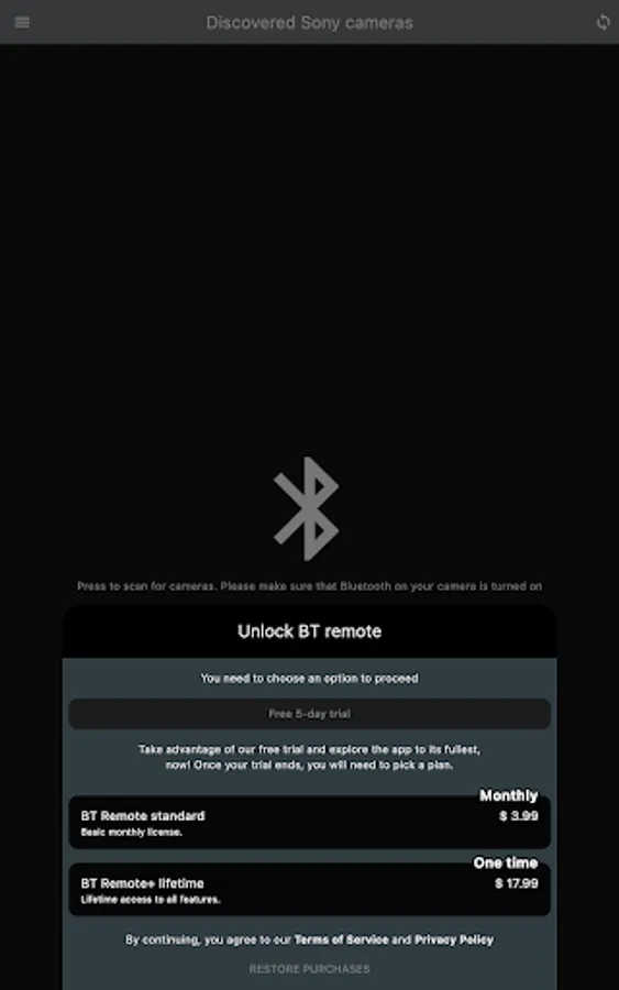It comes with a free trial. BT remote is offered as software as a service (SaaS). You will need to purchase a subscription or a lifetime license from within the app.