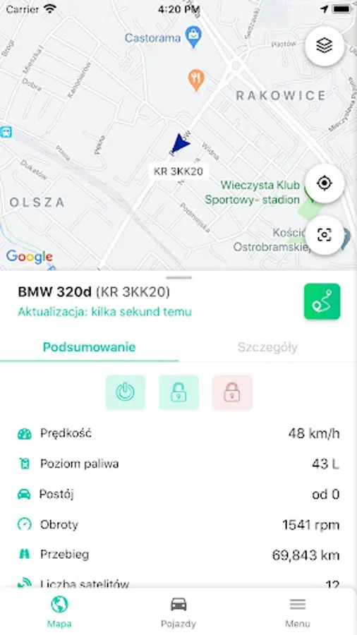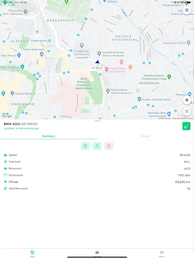 Mobile version of the application Navifleet allows a quick check of vehicle parameters, such as: