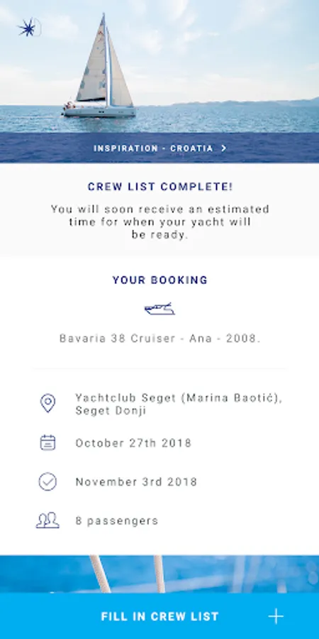 Online check-in with the Navigare Yachting Experience app means no queuing at the base! You will enter the crew list through the app and get accurate information on the check-in time on the boat. Navigare staff will wait for you on the boat with all necessary documentation.