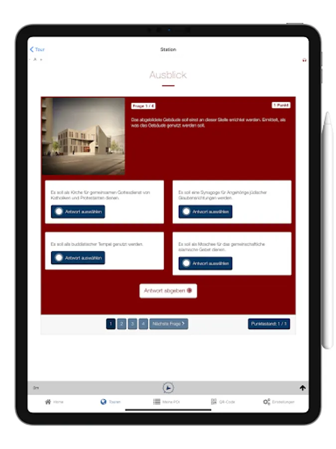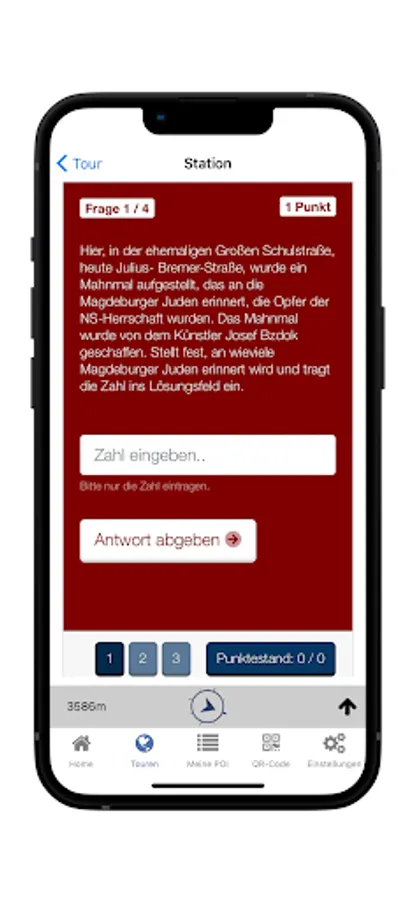 After downloading onto cell phones or tablets, the participants, ideally in small groups, look for various stations (POIs), discover regional or national historical significance and solve exploration tasks on the tablet.