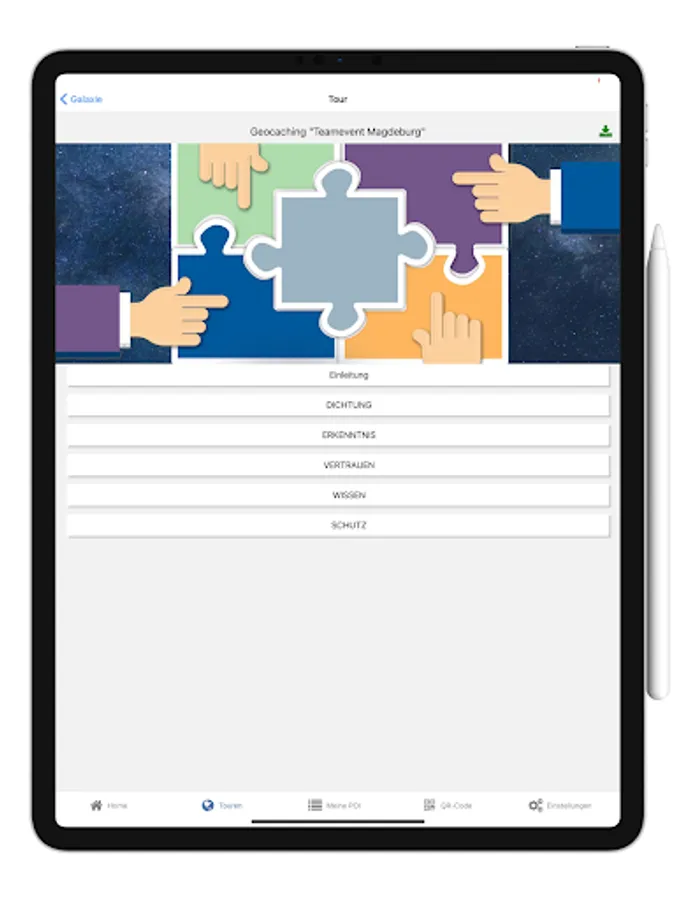 The AppTeamwork contains 4 modules that have been designed for different age groups and leisure activities. Two tours were developed as a team event for adults, an agent tour for young people and a treasure hunt for children aged 12 and over.