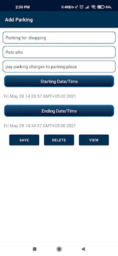 You can add multiple parking spots for memorization purpose and can view it on map, where you have parked the car, bike, cycle or anything you want by adding location of parking, time, date, title and comments