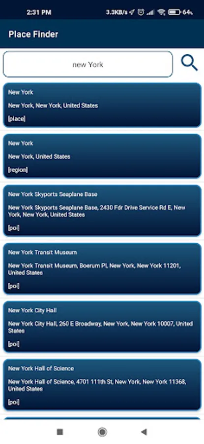 It shows point of interests, find places to visit near you like parks, airports, bus stops, amusement parks, assisted homes, zoo, beach, bookstores, colleges, fast foods and much more