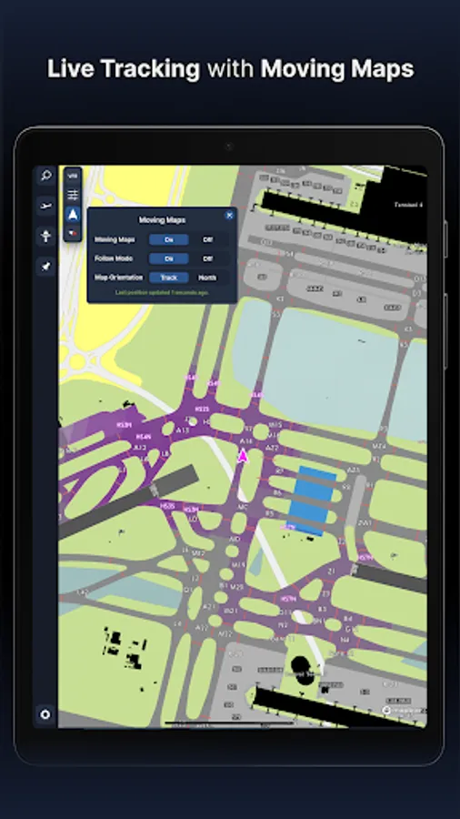 - Weather information including runway crosswinds updated in real-time.