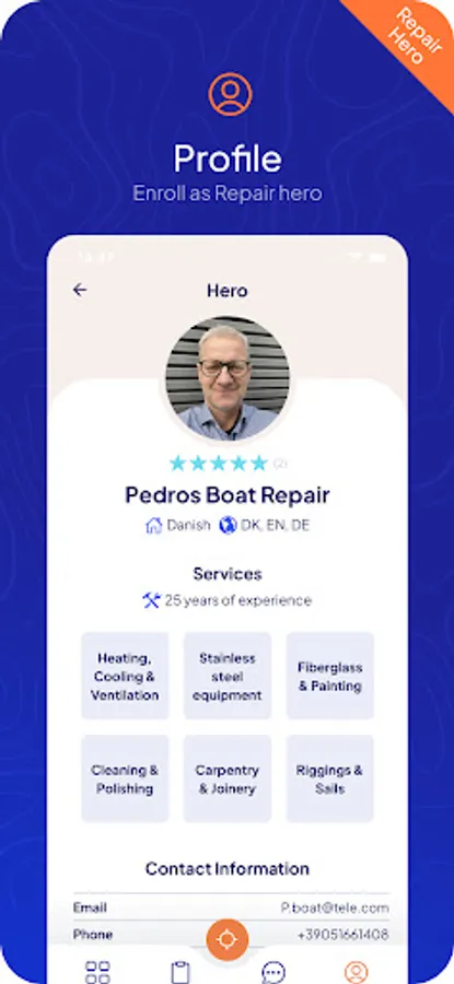 The Repair hero profile and location will be visible to Navipair Boaters only and the Repair Hero can be contact by Boaters when they share a task as part of a quote request.