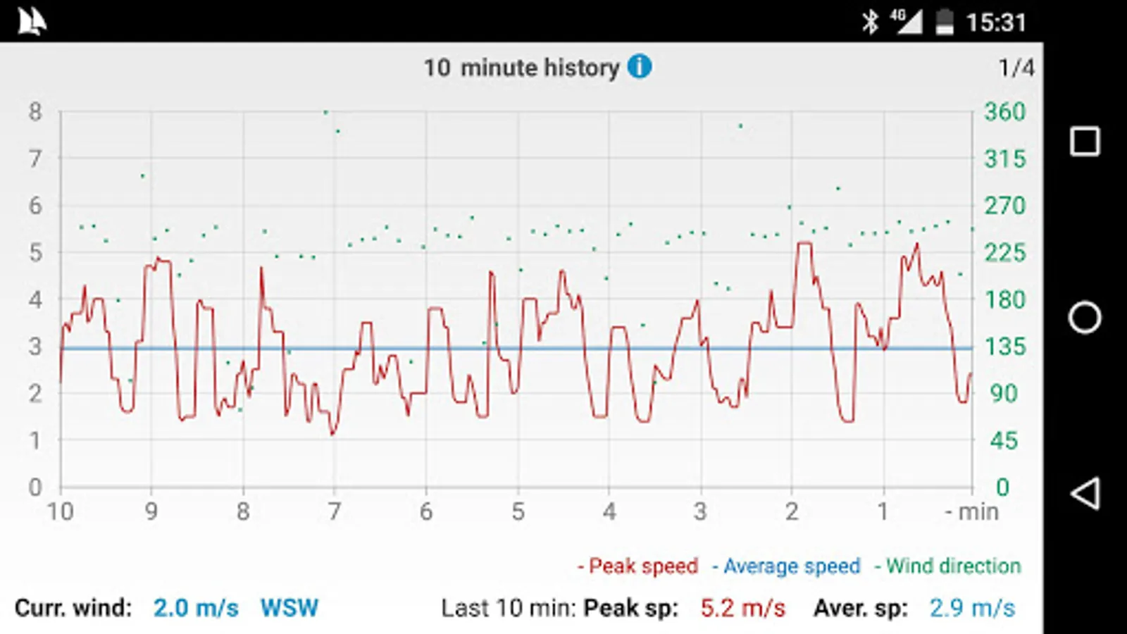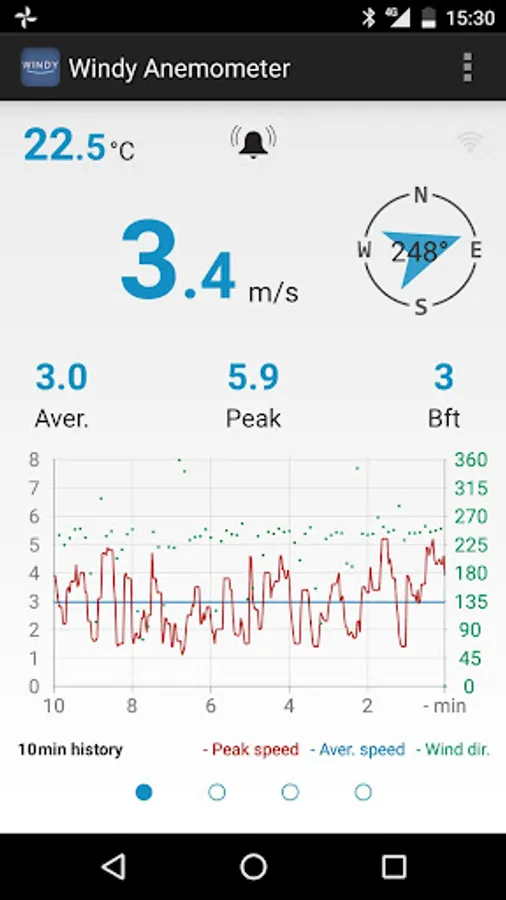 - Current, average and maximum wind speed, wind direction and air temperature