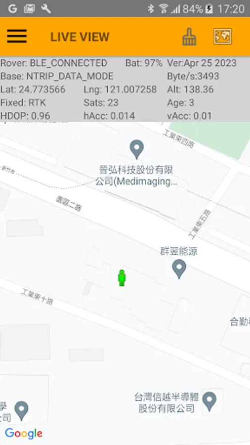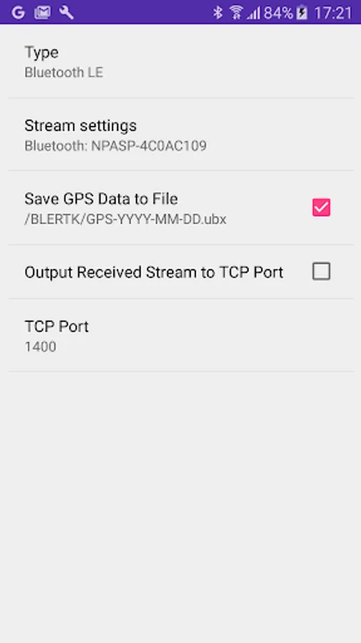 Receive GPS data and input correction data from/to GR9029 receiver via Bluetooth LE.